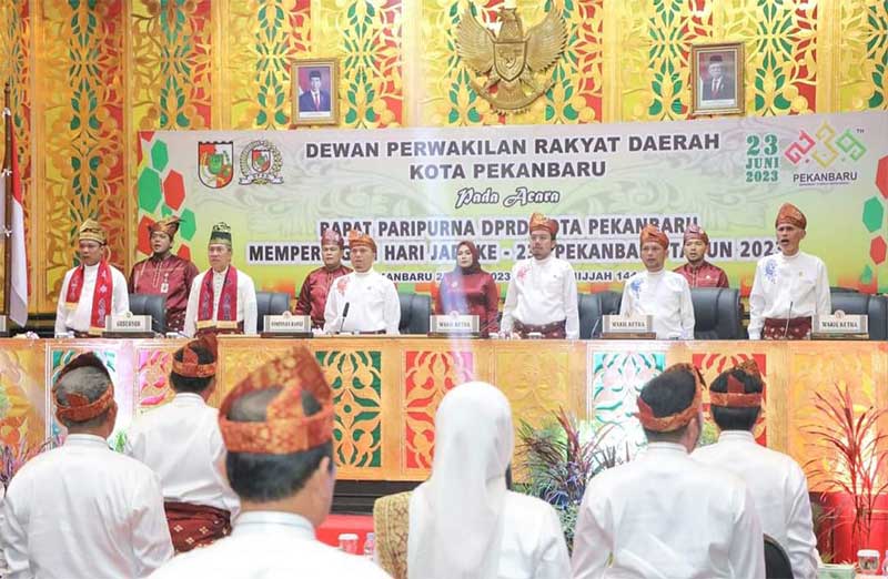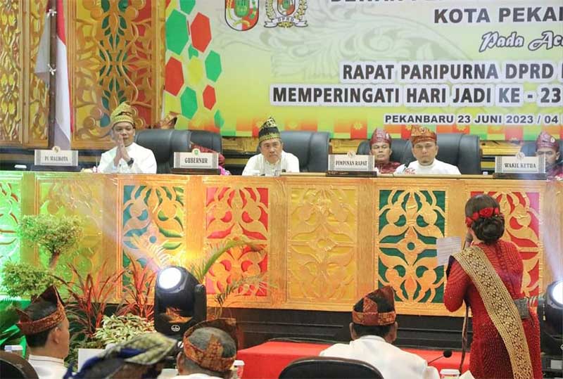 Rapat paripurna berlangsung khidmat dan dibuka oleh Ketua DPRD Pekanbaru Muhammad Sabarudi, dan langsung mempersilakan pemuka adat Kota Pekanbaru membacakan sejarah Kota Pekanbaru.