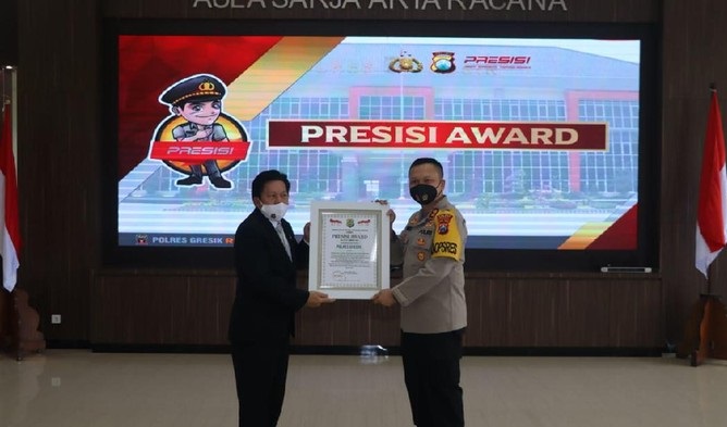 Gresik – Polres Gresik menerima penghargaan Presisi Award dari Lembaga Kajian Strategis Kepolisian Indonesia (LEMKAPI). Penghargaan diberikan berkat pelayanan dan inovasi-inovasi yang dilakukan Polres Gresik.