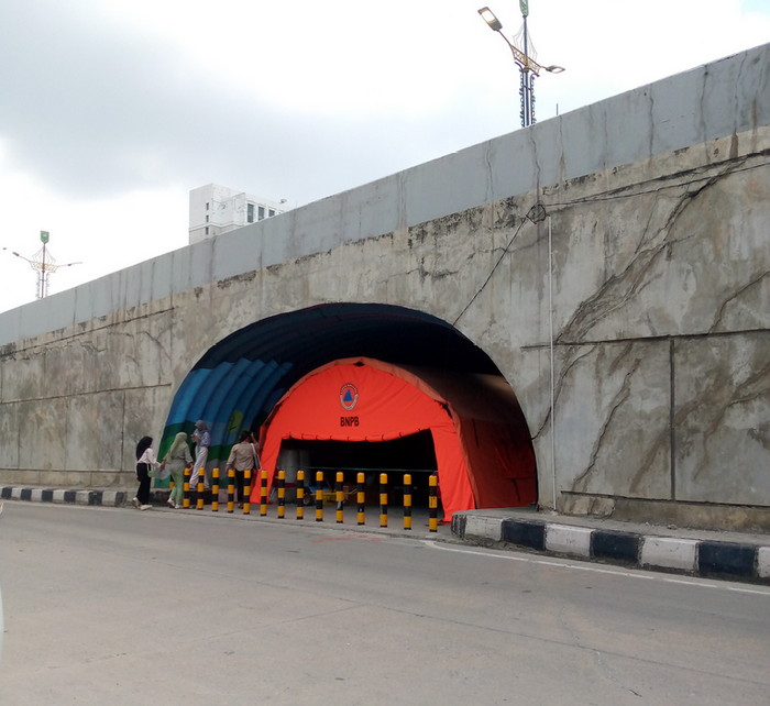 Ada Tenda Darurat BNPB Berdiri di Bawah Kolong Flyover