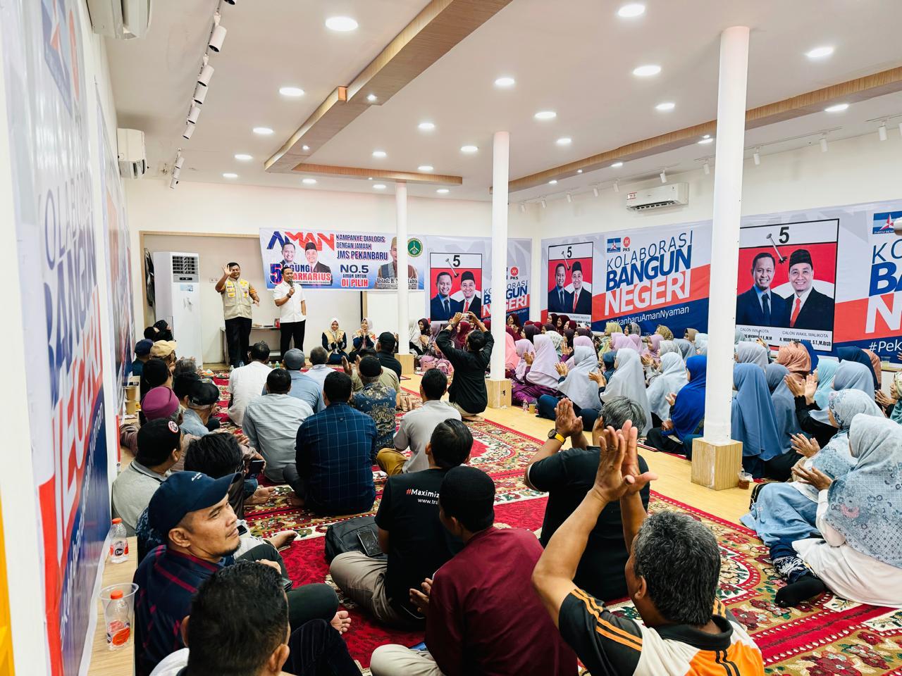 Kampanye yang digelar di Jalan Arifin Ahmad Pekanbaru tersebut dimulai dengan jamuan makan siang bersama jamaah JMS, sebelum dilanjutkan dengan diskusi dan penyampaian program.
