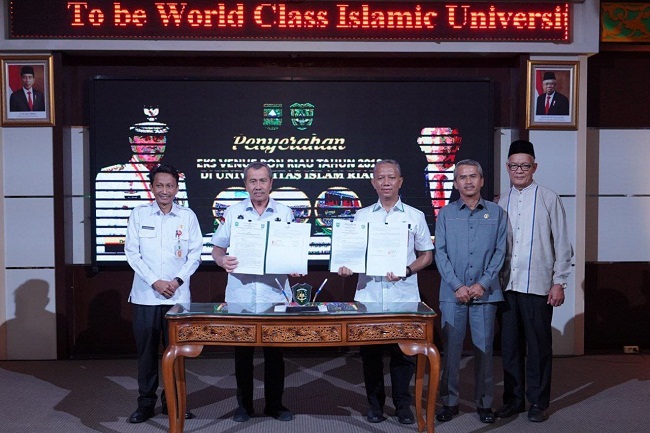 PEKANBARU, RIAUSATU.COM – Pemerintah Provinsi (Pemprov) Riau menyerahkan tiga unit eks venue kepada Universitas Islam Riau (UIR). Penyerahan dilakukan langsung oleh Gubernur Riau (Gubri) Drs H Syamsuar MSi, di Auditorium Lantai IV Gedung Rektorat UIR, Rabu (23/11/2022).