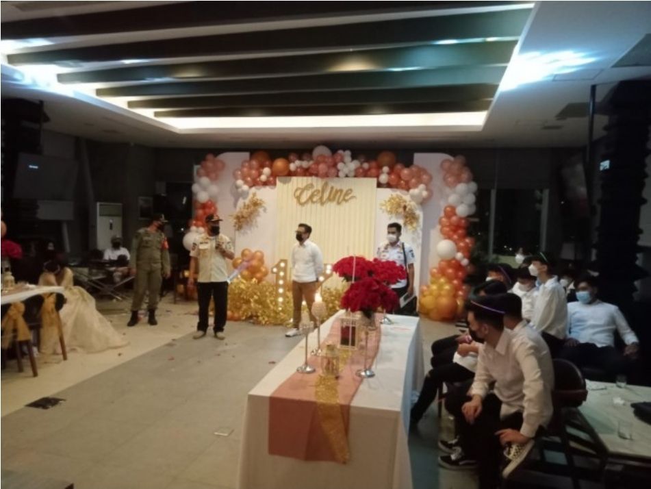 JAMBI –  Pelajar Sekolah Menengah Atas (SMA) di Kota Jambi dibubarkan Satpol PP Kota Jambi setelah kedapatan melakukan perayaan ulang tahun (sweet seventeen) yang disertai musik Disk Jockey (DJ). Kegiatan tersebut ditemukan tak memenuhi standar protokol kesehatan. Acara ini digelar di Room The View Hotel Swissbell, Sabtu (24/4) malam.