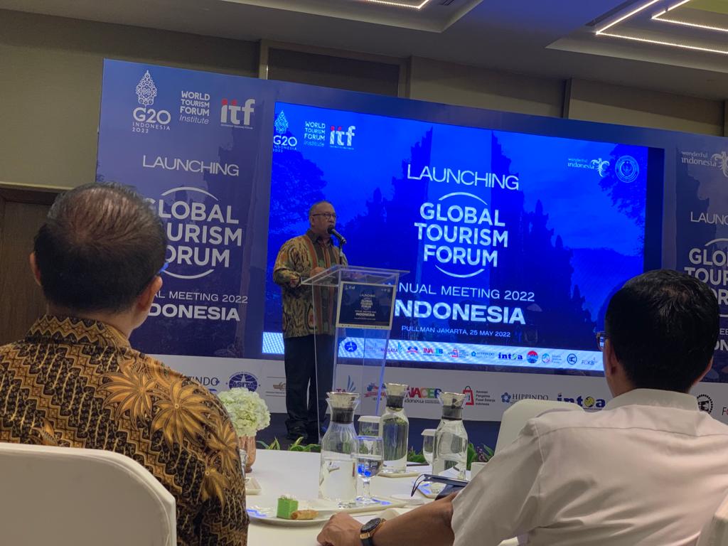 “Global Tourism Forum Annual Meeting adalah event terbesar dalam skala GTF. Pertemuan tahunan GTF ini akan menghadirkan lebih dari 500 delegasi yang terdiri dari sejumlah besar eksekutif industry pariwisata, investor dan pejabat tinggi dari banyak negara di seluruh dunia,“ jelas Chairman Indonesia Tourism Forum (ITF) Sapta Nirwandar dalam launching Global Tourism Forum Annual Meeting di Pullman Hotel Jakarta, Rabu (25/5/2022).