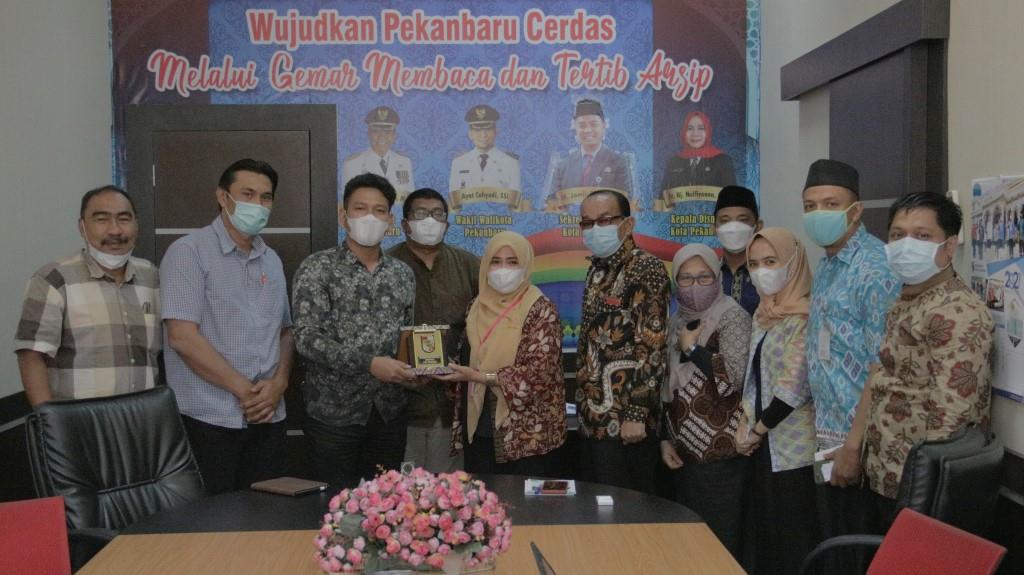 PEKANBARU – Kepala Dinas Perpustakaan dan Kearsipan (Dispusip) Kota Pekanbaru, Nelfiyonna menyambut kedatangan Anggota Dewan Perwakilan Rakyat Daerah (DPRD) Kabupaten Karo, Kamis (22/4) kemarin. Mereka membahas upaya peningkatan minat baca dan kunjungan perpustakaan selama masa pandemi Covid-19.