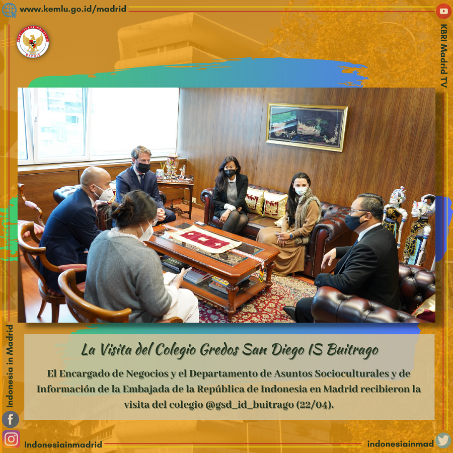 Berharap mengulang kesukesan kegiatan sebelumnya, KBRI Madrid dan Sekolah GSD ID Buitrago melakukan pertemuan untuk mendiskusikan potensi-potensi kolaborasi selanjutnya pada Kamis (22/04/2021).