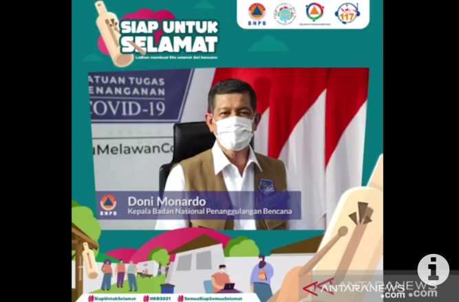 “Mari kenali ancaman bencana di sekitar kita. Pahami tingkat risiko bencananya dan tingkatkan budaya sadar bencana agar kita bisa mengurangi korban jiwa dan kerugian harta benda,” ujar Doni dalam pesan videonya yang diterima di Jakarta, Senin.