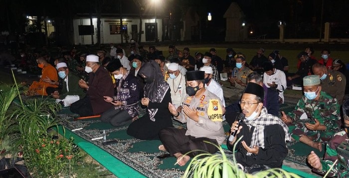 Doa bersama di lapangan upacara Polres Mojokerto, Jalan Gajah Mada, Kecamatan Mojosari berlangsung khidmat. Para tokoh lintas agama secara bergantian berdoa sesuai ajaran masing-masing. Mulai dari pemuka Agama Islam, Kristen, Konghucu, Hindu, Budha, hingga aliran kepercayaan Kejawen.