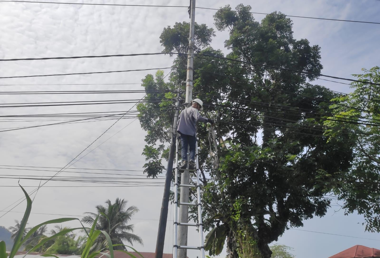 PLN Icon Plus SBU Regional Sumatera Bagian Tengah menurunkan beberapa personel untuk melakukan pekerjaan pemeliharaan jaringan kabel fiber optik.