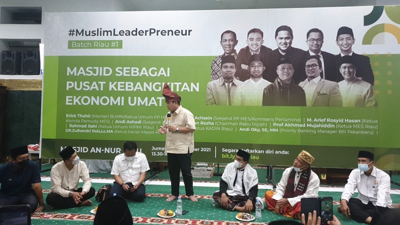 Riau – Menteri BUMN yang juga Ketua Umum Pimpinan Pusat Masyarakat Ekonomi Syariah (MES) Erick Thohir mengatakan masjid bukan hanya tempat sholat namun di masjid bisa dibangun komunitas ekonomi.