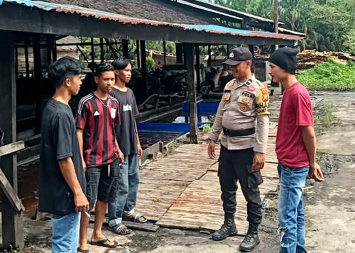 INHIL-Polsek Gaung Anak Serka (GAS) dalam hal ini Bhabinkamtibmas Teluk Sungka Aipda Andromik hadir ditengah-tengah masyarakat guna mengajak masyarakat untuk menciptakan suasana Pemilu damai dan Aman, Sabtu (27/1/2024).