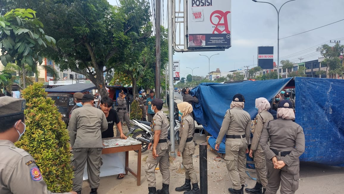 PEKANBARU – Petugas Satpol PP Kota Pekanbaru, Jumat (26/2/2021) pagi, tertibkan pedagang kaki lima (PKL) diseputaran pasar pusat Jalan Agus Salim, dan Jalan Jenderal Sudirman Pasar Sukaramai.