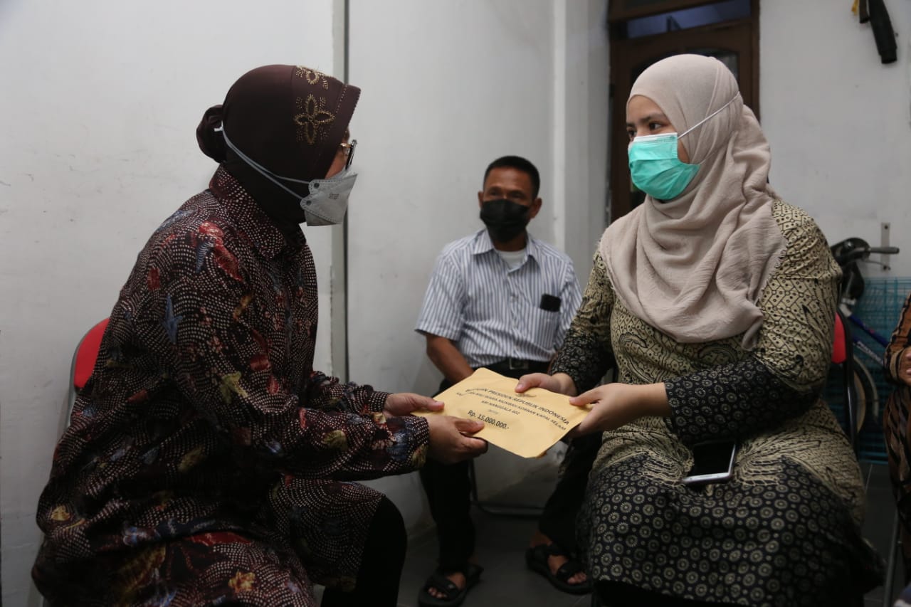 Mensos mengunjungi keluarga korban KRI Nanggala 402 di Jalan Rencong 2 No 9 Sidoarjo, memberikan mainan anak, handphone, tablet, alat disabilitas serta akan mengirimkan paket sembako.