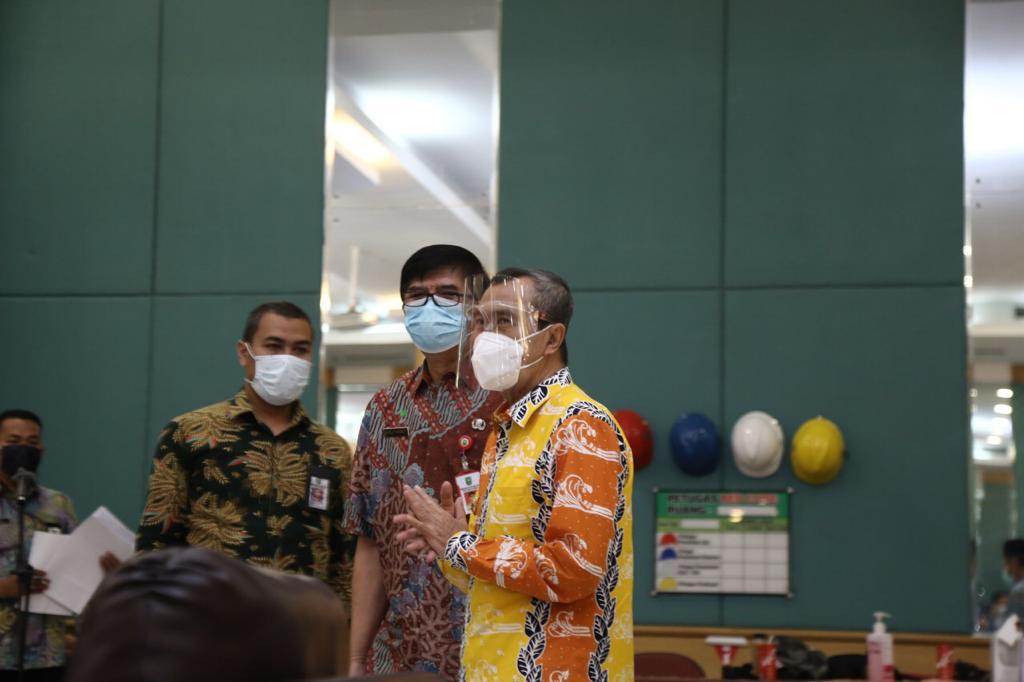 PEKANBARU – Setelah sekitar dua bulan menjalani perawatan medis akibat terpapar Covid-19, Kamis (28/1/2021), Gubernur Riau Drs H Syamsuar MSi tampak hadir di Ruang Serbaguna RSUD Arifin Achmad Provinsi Riau.