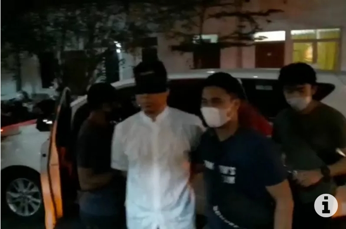 Munarman, yang diseret oleh beberapa anggota Densus 88 dari dalam rumahnya, dibawa ke Polda Metro Jaya menumpang mobil berwarna putih.