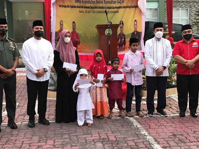Jelang Idul Fitri, Gubri Serahkan Santunan Anak Yatim di Kodim 0301 Pekanbaru