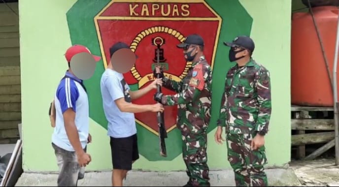 Sementara itu, penyerahan senjata rakitan tersebut terjadi di Pos Kumba Semunying yang langsung diserahkan oleh Sdr. Ramses ditemani satu orang saudaranya kepada anggota Satgas Yonif 642/Kapuas. “Senjata ini saya serahkan kepada Pos TNI yang telah tulus menjaga serta membantu kesulitan masyarakat disini,” kata Sdr. Ramses kepada Letda Inf Rosi selaku Danpos Kumba Semunying.