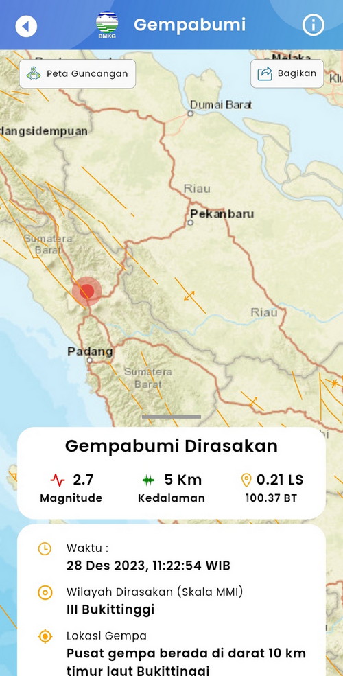 Wilayah Bukittinggi Sumatera Barat Diguncang Gempa