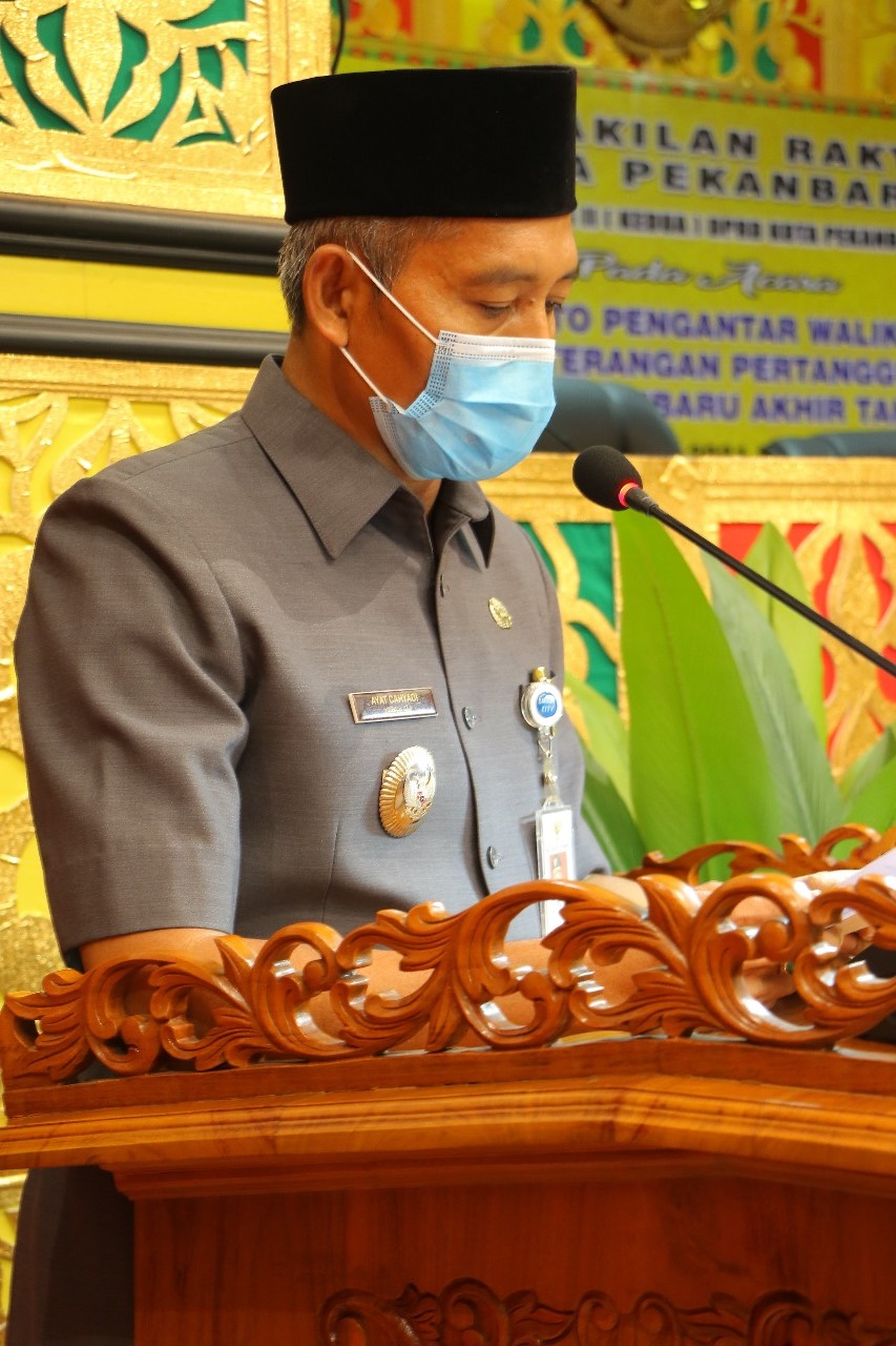 PEKANBARU – Pemko Pekanbaru menyampaikan Laporan Keterangan Pertanggung Jawaban (LKPJ) tahun anggaran 2020 ke DPRD Kota Pekanbaru, Senin (29/3/2021). Dalam LKPJ itu, Pemko Pekanbaru melaporkan penurunan Pendapatan Asli Daerah (PAD) akibat pandemi Corona.