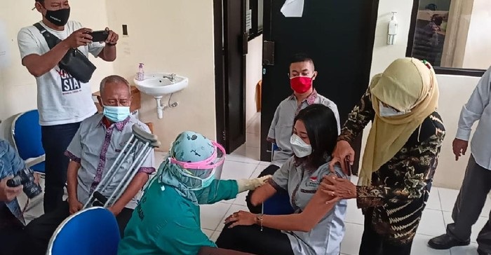 Kota Kediri – Belasan atlet, pelatih, dan official National Paralympic Committe (NPC) Kota Kediri menjalani vaksinasi COVID-19. Vaksinasi dilakukan untuk persiapan mengikuti Pekan Paralimpik Provinsi Jatim (Peparprov) 2021.