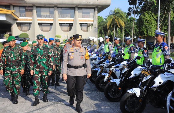 Sebanyak 1.200 lebih personil gabungan terdiri dari TNI dan Polri serta Satpol PP ikut dalam apel tersebut.