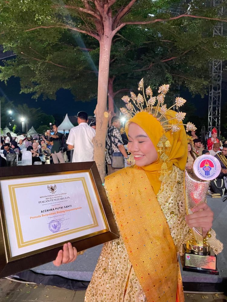 Di tengah semangat Hari Sumpah Pemuda ke-96, Azzahra Putri Santi, Ketua Yayasan Seribu Satu Cita, yang akrab dipanggil Wawa, menerima penghargaan bergengsi sebagai Pemuda/Pemudi Berprestasi di Bidang Kepemimpinan dari Kementerian Pemuda dan Olahraga Republik Indonesia.