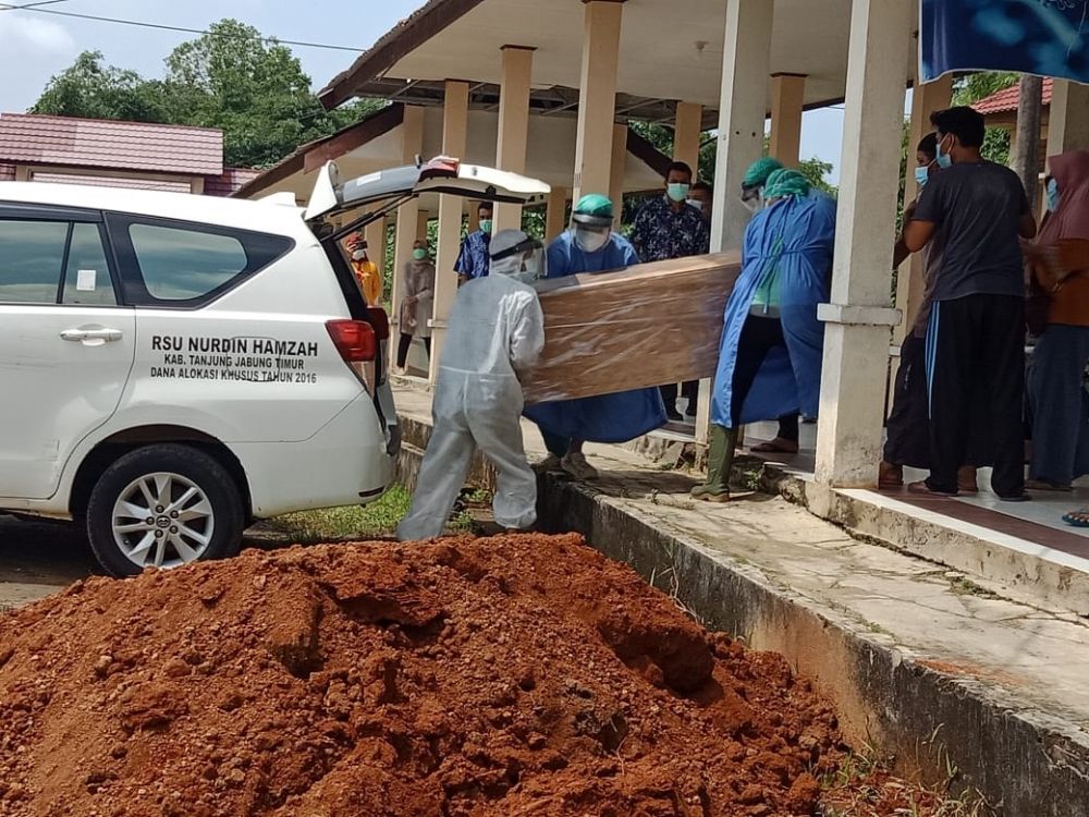 Juru Bicara Satgas Covid-19 Tanjabtim Sapril mengatakan, MN meninggal dunia pada Rabu (28/4) malam di Rumah Sakit Umum Daerah (RSUD) Nurdin Hamzah, Muarasabak. Ia menjalani perawatan sejak 21 April 2021 lalu. Jenazah pasien sudah dimakamkan dengan protokol kesehatan. “Alhamdulillah jenazah sudah dikebumikan sesuai dengan standar protokol penyelenggaraan pemakaman,” kata Sapril, Kamis (29/4).