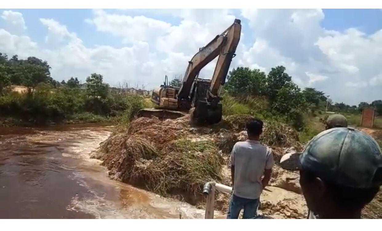 Setelah ditelusuri, ternyata ada beberapa tanggul yang jebol. Sekarang, tanggul yang jebol itu sedang diperbaiki dengan tanah timbun.