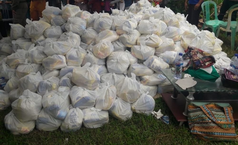 Isi paket sembako tersebut diantaranya adalah beras, gula, minyak goreng, mentega susu, dan lainnya.