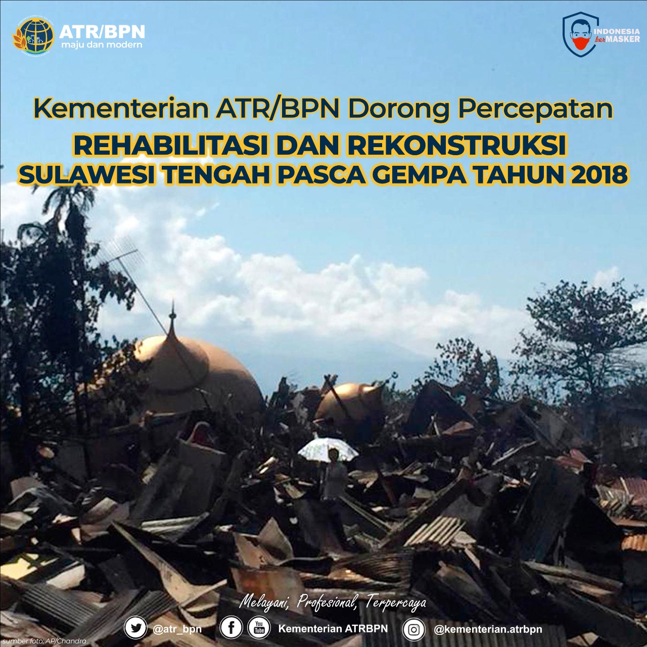Menteri ATR/Kepala BPN, Sofyan A. Djalil, pada kesempatan ini juga menyampaikan bahwa pemerintah memberi perhatian besar terhadap percepatan rehabilitasi dan rekonstruksi pasca bencana di Sulawesi Tengah. “Kementerian ATR/BPN dalam hal ini bisa membantu untuk memfasilitasi yang berkaitan dengan kewajiban kita,” ujarnya.
