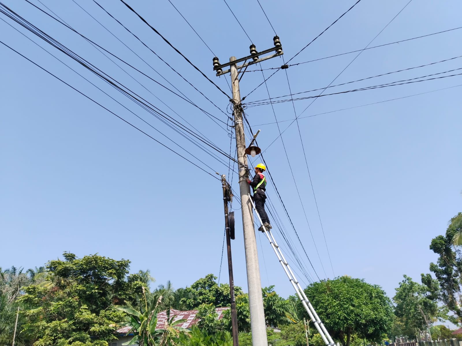 PLN Icon Plus SBU Regional Sumatera Bagian Tengah menurunkan beberapa personel untuk melakukan pekerjaan pemeliharaan jaringan kabel fiber optik.