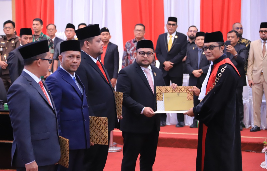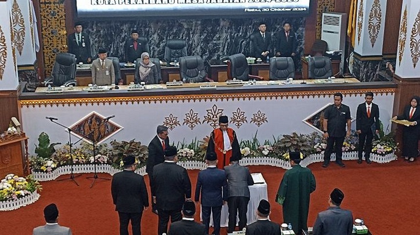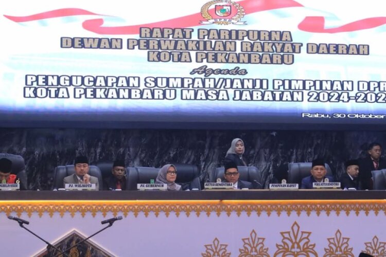 Mereka dilantik pada Rapat Paripurna DPRD dalam agenda pengucapan sumpah/janji pimpinan DPRD Kota Pekanbaru, di Balai Payung Sekaki, Rabu (30/10/2024).