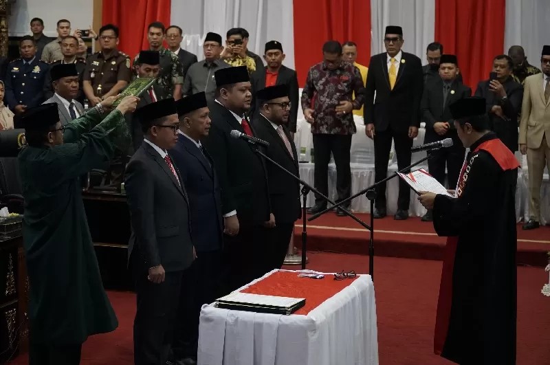 Pengucapan sumpah/janji dimulai dibacakan langsung oleh Ketua PN Kota Pekanbaru, Raden Heru Kuntodewo MH, dan diikuti oleh Ketua dan Wakil Ketua DPRD Pekanbaru.