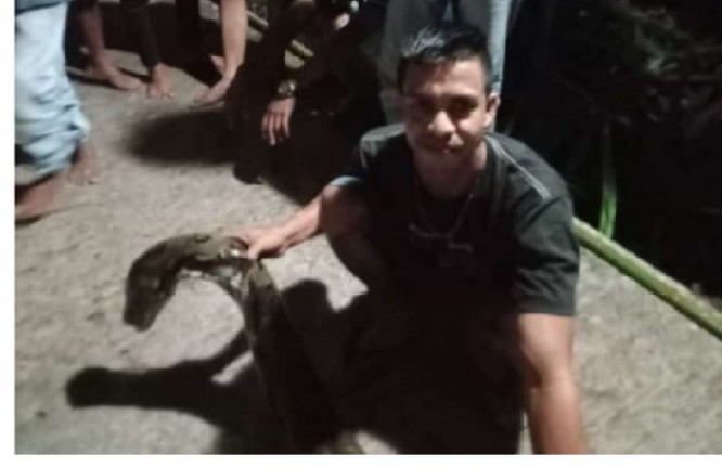 KUALA ENOK – Lega, warga RT 2 Kuala Enok Kecamatan Tanah Merah, Kabupaten Indragirim Hili, Provinsi Riau, Sabtu (30/1/2021) malam, nyaris celaka diserang ular piton sepanjang tujuh meter
