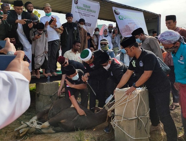 Usai penyelenggaraan shalat Ied dan khutbah, UAS melakukan penyembelihan hewan kurban. “Ini berbeda dengan hari raya qurban terdahulu. Idul Adha tahun ini spesial, UAS langsung menyembelih sapi yg diqurbankan melalui Yayasan Tabung Wakaf Umat” kata Ketua Yayasan, Alnof Dinar.