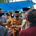 PEKANBARU – Camat Bukitraya, Tengku Ardi Dwisasti, S.STP., M.Si, meninjau langsung penerapan protokol kesehatan (Prokes) di Pasar Kaget Sapta Taruna, RT 03