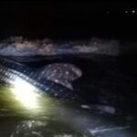 Tulungagung – Seekor hiu paus ditemukan terdampar di Pantai Bayem, Besuki, Tulungagung. Warga setempat kesulitan untuk mengevakuasi lantaran bobot hiu paus yang