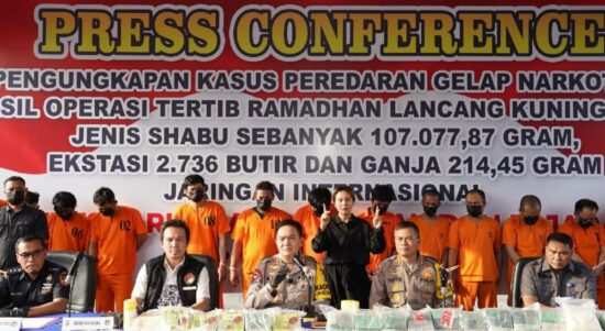 PEKANBARU – Polda Riau kembali berhasil menggagalkan peredaran 107,7 kg narkotika jenis sabu dan 2.736 butir pil ekstasi serta 214,45 gram ganja.