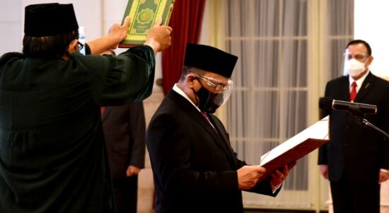 Jakarta – Presiden Joko Widodo menyaksikan pengucapan sumpah jabatan Indriyanto Seno Adji sebagai anggota Dewan Pengawas Komisi Pemberantasan Korupsi (KPK) Pengganti Antarwaktu