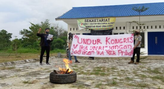 PEKANBARU – Sejumlah alumni Universitas Riau yang mengatasnamakan diri Forum Peduli IKA Unri melakukan aksi penyegelan Sekretariat Panitia Kongres V IKA Unri