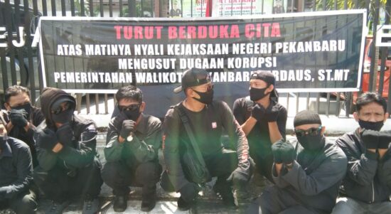 PEKANBARU – Sejumlah massa yang tergabung dalam Forum Masyarakat Menuntut Keadilan Kota Pekanbaru, Jumat (7/8/2020), mendatangi kantor Kejaksaan Negeri Pekanbaru, Jalan Jenderal