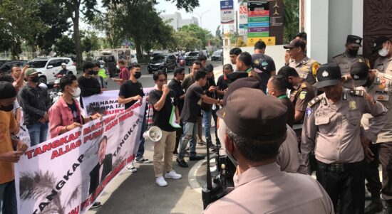 PEKANBARU – Aliansi Mahasiswa Kota (Amak) Pekanbaru, Selasa (27/9/2022) siang, kembali melakukan aksi unjuk rasa di depan Gedung Kejaksaan Tinggi Riau. Sama