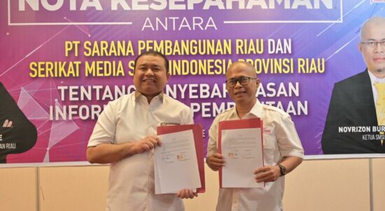 PEKANBARU – Serikat Media Siber Indonesia (SMSI) Provinsi Riau meneken Memorandum of Understanding (MoU) atau Nota Kesepahaman dengan PT Sarana Pembangunan Riau