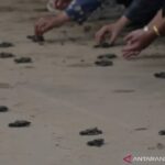 Banda Aceh – Mahasiswa Jurusan Biologi Universitas Syiah Kuala (USK) Banda Aceh melepaskan 156 tukik jenis lekang di Pantai Pasi Jalang, Kecamatan