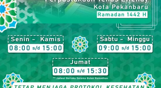 PEKANBARU – Perpustakaan Tenas Effendy meningkatkan pelayanan dan kunjungan. Dinas Perpustakaan dan Kearsipan Kota Pekanbaru menambahkan jam kunjungan pada Sabtu-Minggu yang berlaku mulai