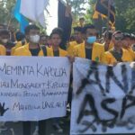 PEKANBARU – Seratusan mahasiswa Universitas Lancang Kuning (Unilak) Pekanbaru melakukan aksi unjuk rasa di depan Mapolda Riau Jalan Pattimura Pekanbaru, Rabu (12/10/2022).