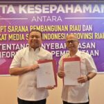 PEKANBARU – Serikat Media Siber Indonesia (SMSI) Provinsi Riau meneken Memorandum of Understanding (MoU) atau Nota Kesepahaman dengan PT Sarana Pembangunan Riau