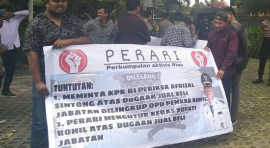 JAKARTA – Sejumlah massa yang menamakan dirinya Perkumpulan Aktivis Riau (PERARI), Senin (26/9/2022), menggelar unjuk rasa di depan Gedung Merah Putih KPK,