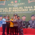 PEKANBARU – Polda Riau bersama TNI melaksanakan silaturahmi dan Halal bi Halal 1444 H yang dihadiri langsung Gubernur Riau Syamsuar bertempat di