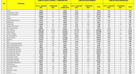 PEKANBARU – Kasus positif virus Corona (Covid-19) di Republik Indonesia (RI), Senin (1/2/2021), bertambah 10.994 orang. Dengan penambahan tersebut, total kasus positif virus Corona di