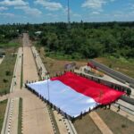 Peringati HUT RI Ke-75, Korem 174 Merauke Bentangkan Bendera Merah Putih Sepanjang 30 x 20 Meter di Titik 0 Km PLBN Sota Merauke